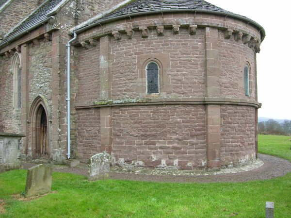 The apse of Kilpeck church. The corbel table surrounds the entire building